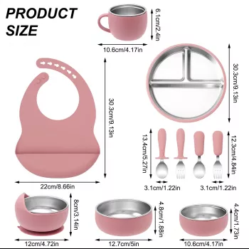 10PCS Baby Feeding Set Stainless Steel Bowl & Silicone Tableware